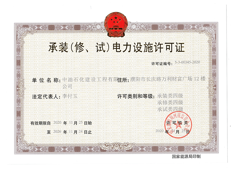 承装(修、试)电力设施许可证